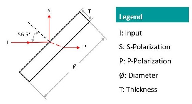BK7, 56Deg Polarization Beamsplitter Plate, Ø= 12.7mm, Coating: Tp>95% Rs>99.5% @1064nm, Extinction Ratio = Tp/Ts>100:1
