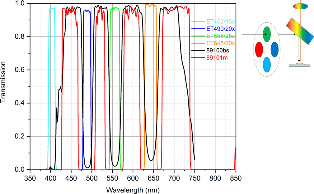 89022 ET Series - Sedat Multiband,Typical fluorophores Cy3/TRITC,Cy5,Filters can be purchased separately