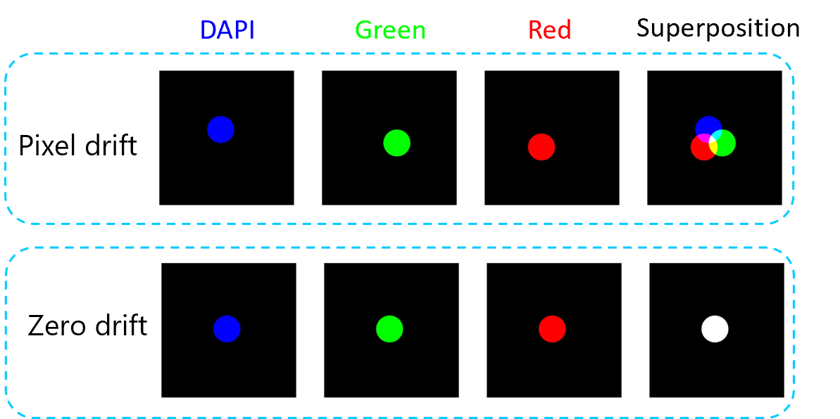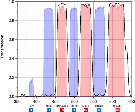 • Special processing is applied to the DAPI channel in the multi-band filter set to avoid the DAPI signal being too strong and masking the signal of other channels;