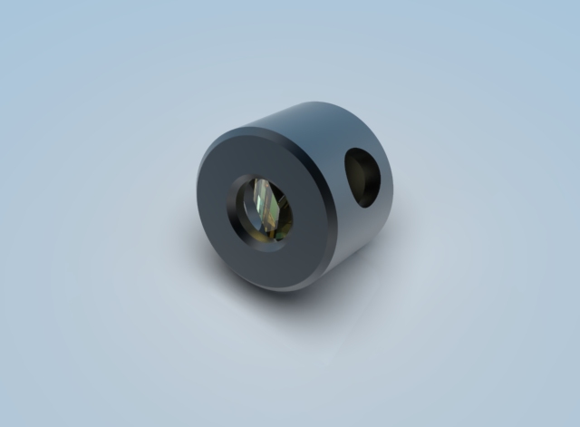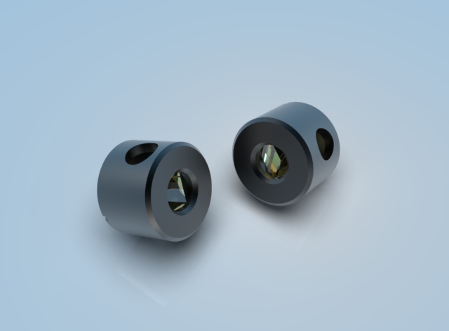Rochon Polarizer is used to split an arbitrary polarized incoming light beam into two orthogonal and polarized outgoing light beams. The ordinary ray will continue along the same optical axis of the incoming light beam, whereas the extraordinary ray will have a slight deviation in its angle. This is dependent on the wavelength of the incoming light beam as well as the material of the Rochon Polarizer. The output beams have a high polarization extinction ratio accordingly to their material.