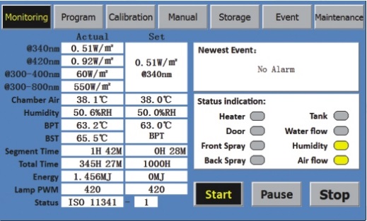 ● BGD 860 Powerful, highly cost-effective, easy to use and convenient to maintain xenon test chamber. ● Use an imported air-cooled xenon lamp and relevant daylight filter, to simulate the full spectrum sun light of outdoor, ensure the test results obtained from laboratory have a perfect correlation with outdoor application. ● Ensure each sample can obtain the same and uniform irradiance during the whole test. ● Outer filter of soda lime. ● Irradiance range from 0.5 to 1.35 W/m2 (420nm). ● Black Board Temperature range from +30 to 90°C. ● Humidity range from 20 to 75% rh. |