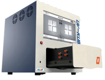 Kloé UV-Kub series is a compact tabletop masking and exposure system based on UV LED with an available light source at 365nm. The collimated system of LED-based optical heads provides a Homogeneous exposure with less than 5% variation over the substrate and enables a divergence angle below 2°. Patterns with a resolution of 2µm are possible. A wide range of lithography applications includes photolithographic processes, multilevel masking, wafer bonding, adhesive curing and wafer-level optics. Compatible with hard or soft masking contact modes with adjustable substrate distance control.